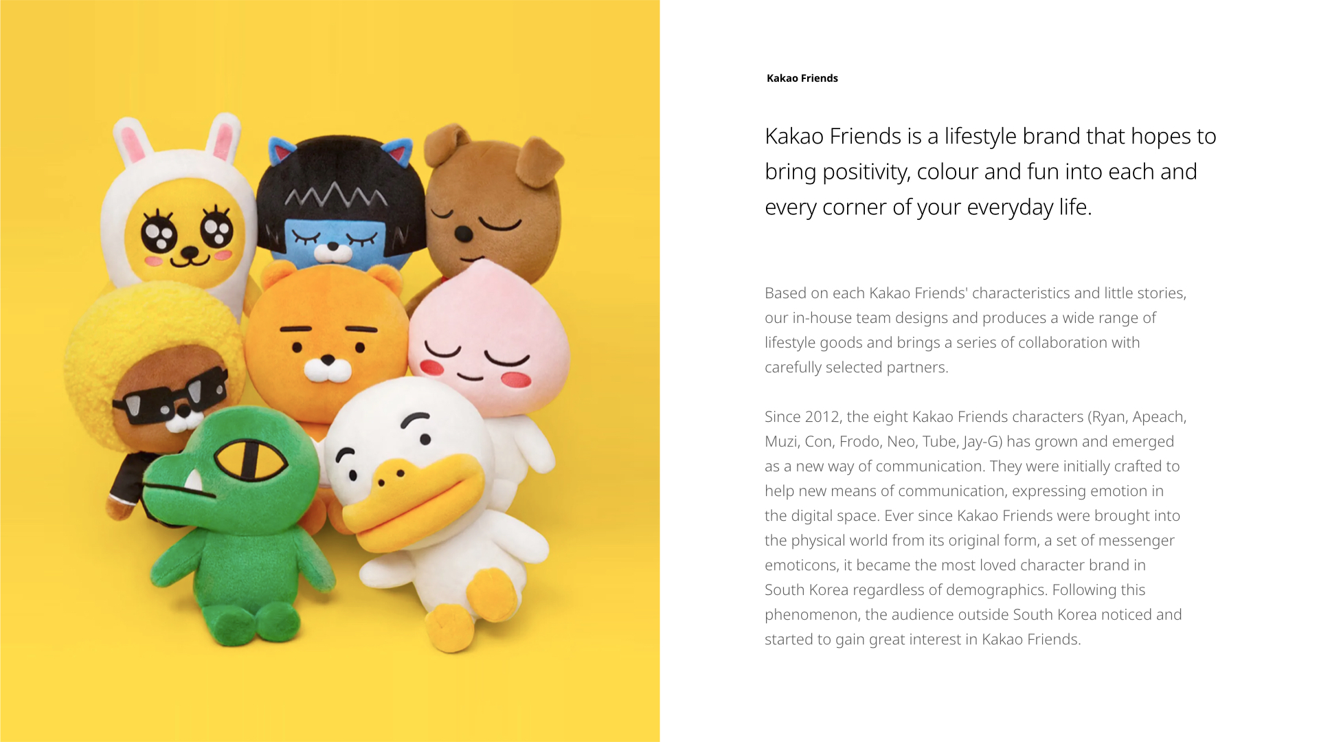 Kakao IX is a Kakao Corp’s European branch. As a director of the company, I was given two missions. One is to increase the engagement of Korean’s favourite messenger app KakaoTalk in Europe. The other one is to make a successful debut of KakaoTalk’s character brand Kakao Friends in Europe. Although these two are already well-known abroad among those interested in Korean culture, they have never been properly introduced to it or have no means to continue the brand experience. Hence helping them continue their journey is my priority. This challenge requires to directly address customer-facing and B2B as well, especially Kakao Friends needed partners to penetrate to the European market with goods. The below section demonstrates some online and offline efforts, including Winter Wonderland 2019, Licensing Expo, M&O, and Kakao Friends Home Smart Appliances.